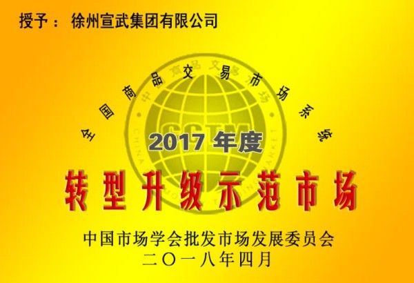 4月24日,公司被中國市場學(xué)會批發(fā)市場發(fā)展委員會授予2017年度全國商品交易市場系統(tǒng)轉(zhuǎn)型升級示范市場稱號。黨委書記、董事長、總經(jīng)理李旭昇獲2017年度全國商品交易市場系統(tǒng)功勛人物稱號。公司轉(zhuǎn)型升級經(jīng)驗,在全國予以推廣。