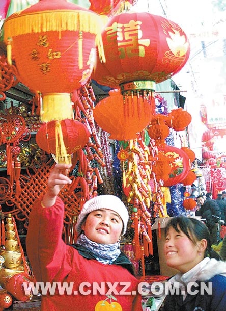 新年即將來(lái)臨,象征著喜慶吉祥的節(jié)日飾品在我市各大市場(chǎng)和商場(chǎng)開(kāi)始熱銷。圖為市民在宣武市場(chǎng)選購(gòu)節(jié)日飾品。